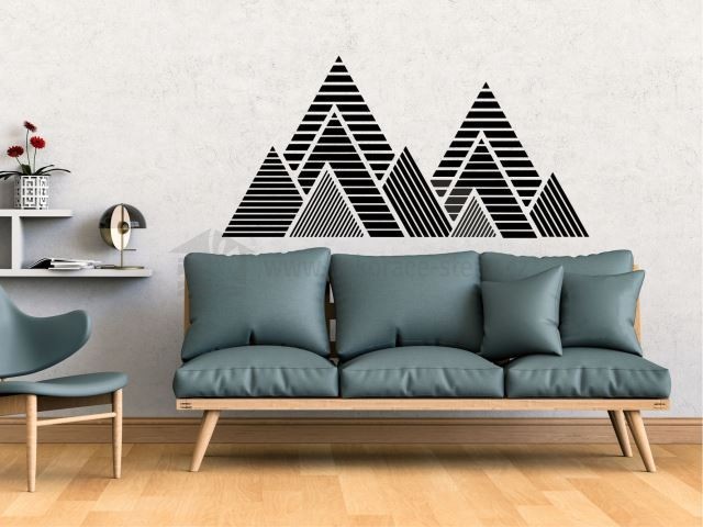 Táto dekoratívna samolepka na stenu s motívom geometrického pohoria kombinuje jednoduchosť, eleganciu a dobrodružného ducha prírody. Minimalistický dizajn s pruhovanými vrcholmi pôsobí štýlovo a zároveň harmonicky - skvele doplní interiér obývacej izby, spálne alebo kancelárie.