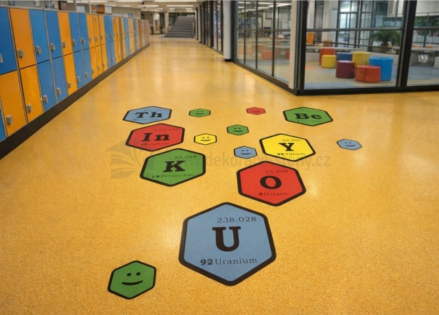 Oživte školský interiér hravou a edukatívnou formou. Dizajnové podlahové samolepky s chemickými prvkami premenia chodbu, učebňu aj átrium na inšpiratívny vzdelávací priestor, ktorý podporuje prirodzené učenie pohybom.