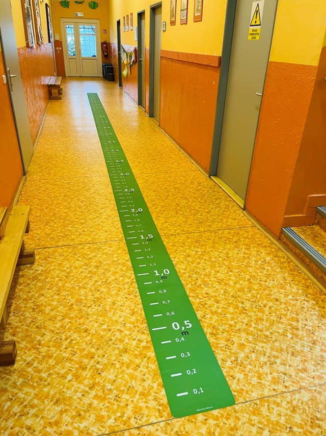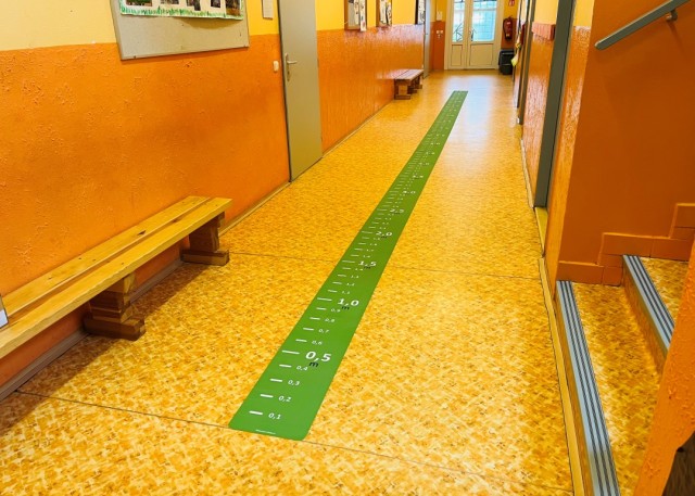Skvelá možnosť, ako deťom na dlhých školských chodbách názorne ukázať jednotky metrov.