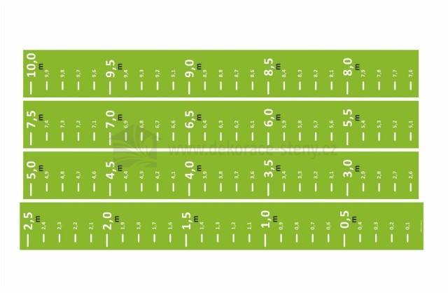 Dĺžka metra je 10 metrov, odstupňované po 10 cm.